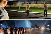 PIMPIN: Kapolrestabes Medan Kombes Pol Dr. Jean Calvijn Simanjuntak, S.I.K., M.H. memimpin apel Kegiatan Rutin yang Ditingkatkan (KRYD) di bawah rintik gerimis di halaman…