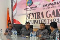 RAKER : Saut Boangmanalu selaku anggota/Koordinator Divisi Humas dan Datin Bawaslu Sumut saat rapat kerja bersama Ketua/Anggota, Kepala Sekretariat dan jajaran staf Bawaslu Kabupaten…