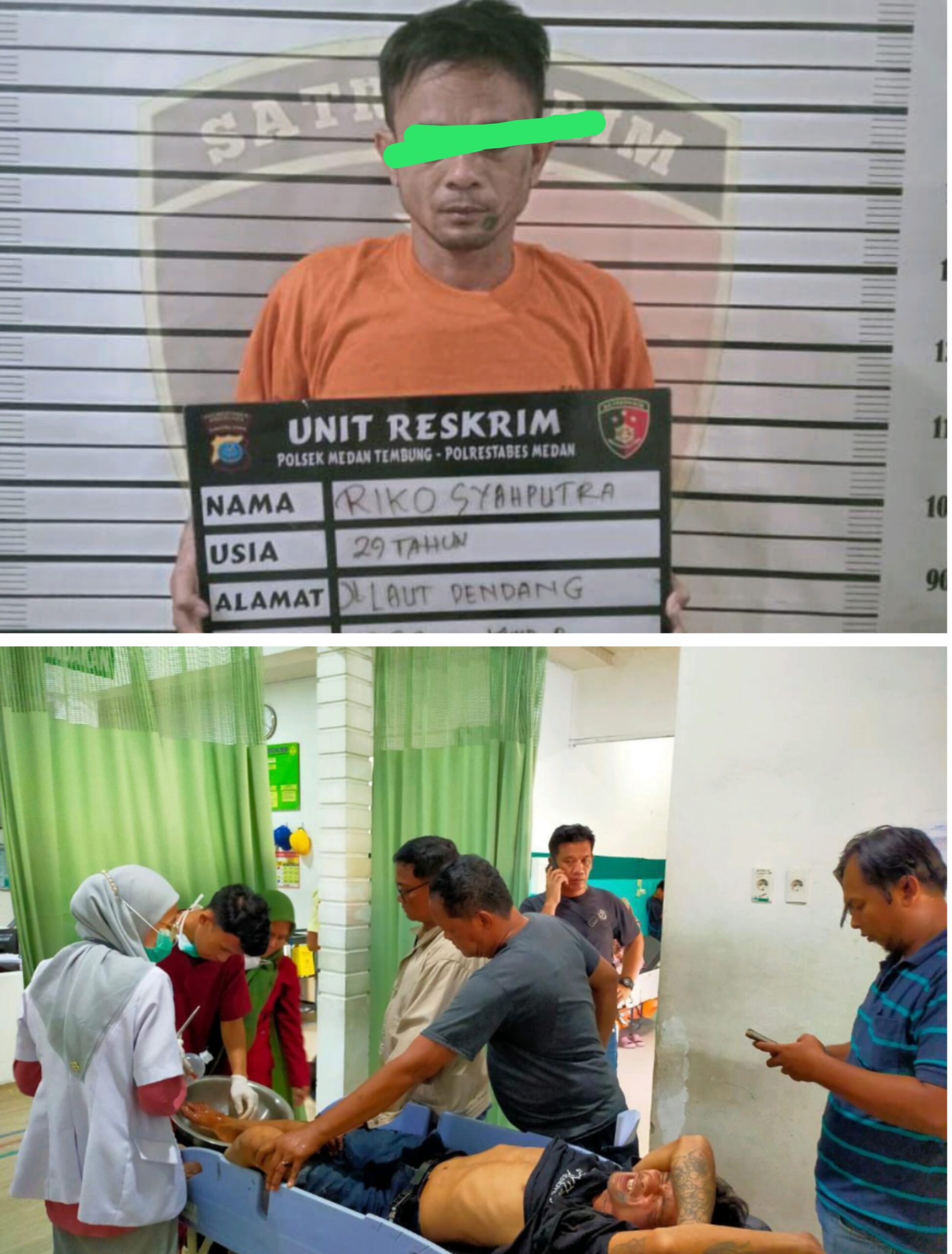 DIRAWAT: Korban, Rajaiman Silalahi saat menjalani perawatan di RS Haji Medan (atas). Dan bawah, saat para pelaku beraksi membegal korban. (sadamanews.com/somin) MEDAN – sadamanews.com…