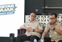DONGKRAK: Kepala Badan Pendapatan Daerah (Bapenda) Provinsi Sumatera Utara, Sutan Tolang Lubis melaksanakan temu pers dalam rangka sosialisasi Gebyar Pajak Sumut Tahun 2026 di…