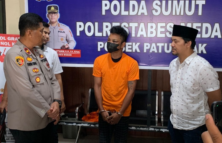 AMANKAN: Kapolsek Patumbak Kompol Faidir SH,MH saat menginterogasi tersangka. MEDAN – Team URC Unit Reskrim Polsek Patumbak Polrestabes Medan Polda Sumatera Utara (Sumut) amankan…