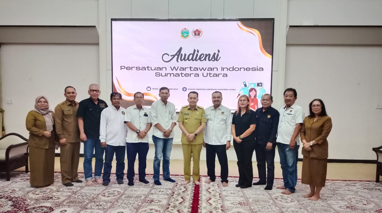 SIAP: PJ Gubsu Dr Drs A Fatoni MSi foto bersama dengan panitia Natal PWI Sumut. MEDAN – Pj Gubernur Provinsi Sumatera Utara Dr. Drs….