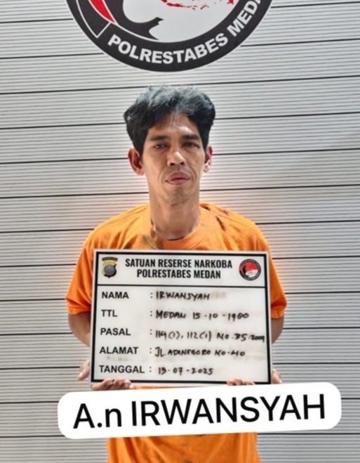 Tersangka MEDAN – Untuk kesekian kalinya, personel Satres Narkoba Polrestabes Medan meringkus pengedar narkoba jenis sabu-sabu. Tersangkanya kali ini bernama Irwansyah alias IIR (30)….