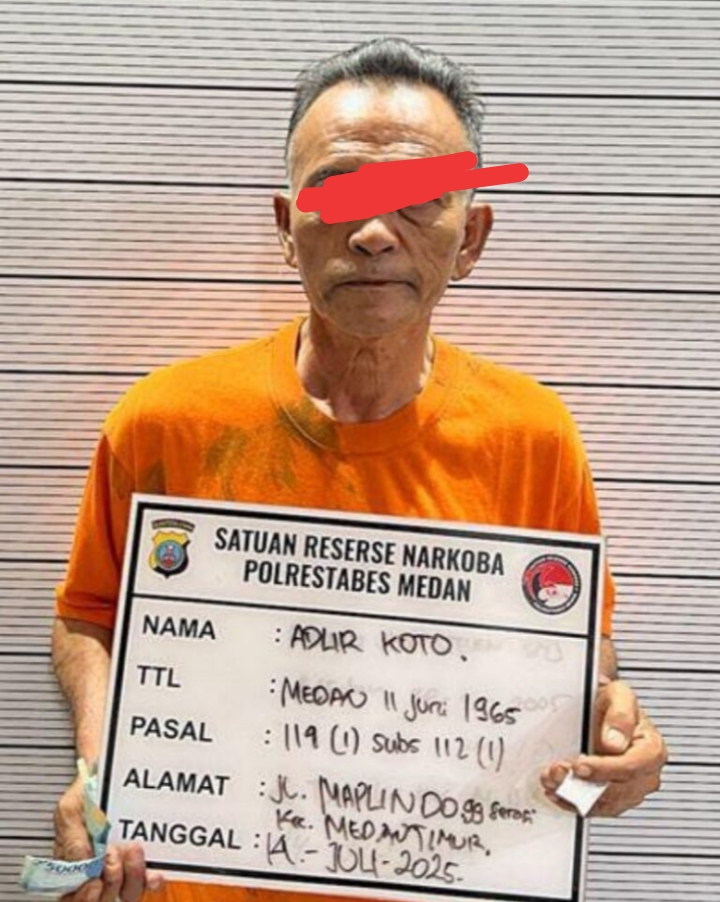 Tersangka MEDAN – Seorang pria paruh baya berinisial AK (60) warga Jalan Mapalindo Gang Serasi Kelurahan Tegal Rejo, Kecamatan Medan Perjuangan diringkus Satres Narkoba Polrestabes…