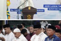 HADIRI: Bupati Deli Serdang, dr H Asri Ludin Tambunan bersama Wabup, Lom Lom Suwondo SS menghadiri peringatan Nuzulul Qur’an di Masjid Nurul Iman, Desa…