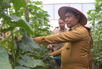 PANEN : Wabup Deli Serdang, Lom Lom Suwondo SS melakukan panen timun bersama Gabungan Kelompok Tani (Gapoktan) Makmur Sejahtera, Desa Sunggal Kanan, Kecamatan Sunggal,…