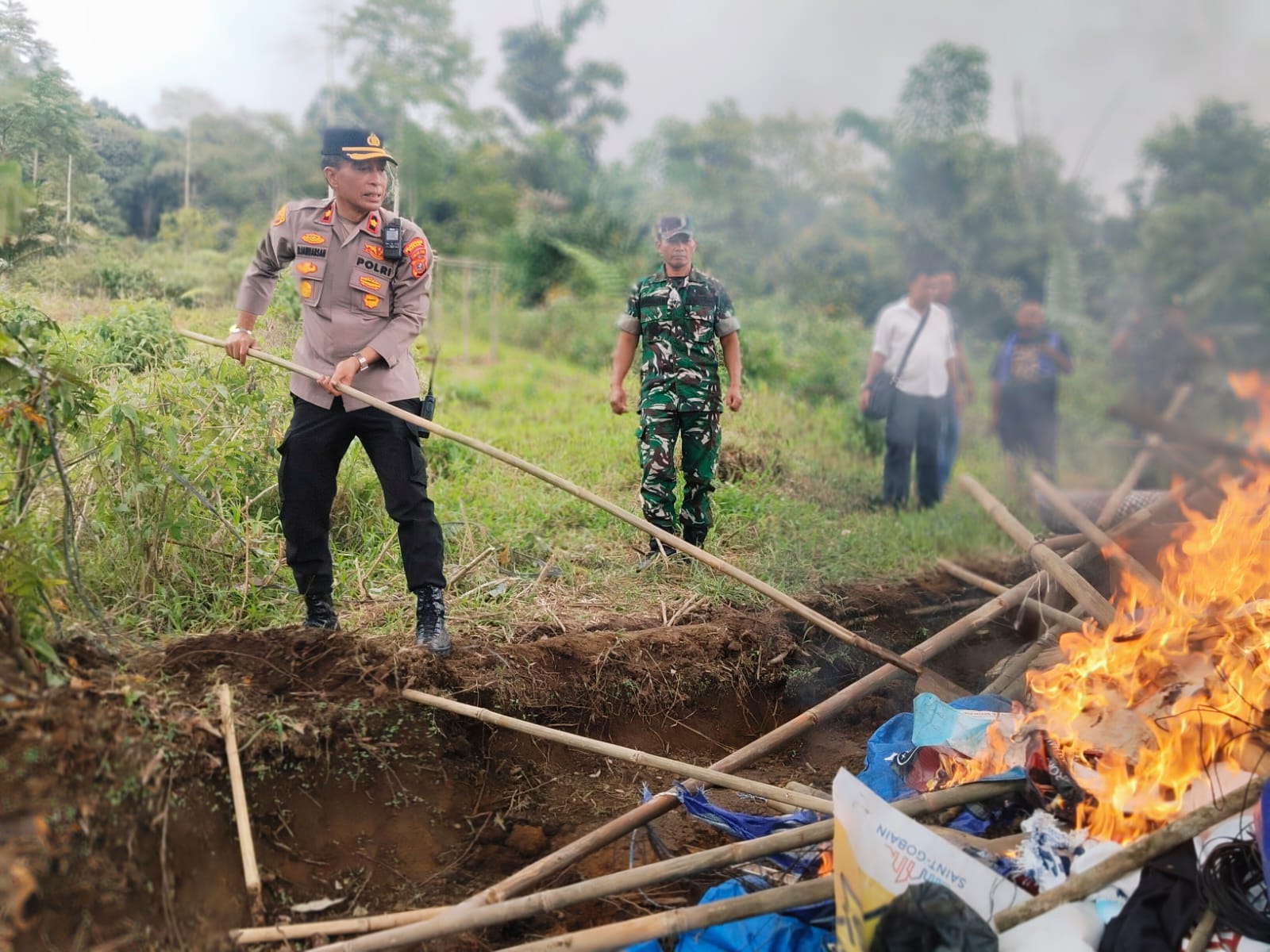 BAKAR: Kapolsek Pancur Batu Kompol H.Djanuarsa S.H saat membakar lokasi judi. SIBOLANGIT – Polsek Pancur Batu bersama-sama dengan Koramil 03 Sibolangit dan aparatur Kecamatan…