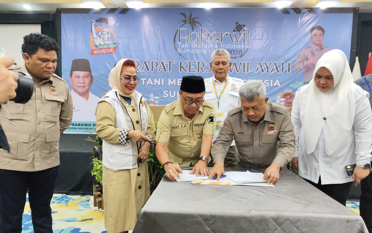 IST/sadamanews.com TANDA TANGANI : DPW Tani Merdeka Indonesia Sumut saat penandatanganan Nota Kesepahaman (MoU) bersama DPD Partai Gerindra Sumatera Utara. MEDAN – Dewan Pimpinan…