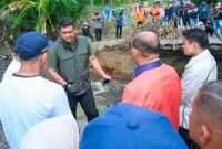 TINJAU : Gubernur Sumut Bobby Nasution meninjau ruas jalan putus di Kecamatan Padangtualang, Kabupaten Langkat, baru-baru ini. Ruas jalan tersebut merupakan jalur alternatif masyarakat…