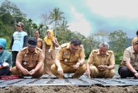 TANAM: Bupati Deli Serdang, dr H Asri Ludin Tambunan bersama petani dari Poktan Arih Ersada Liang Pematang di Dusun I, Desa Liang Pematang, Kecamatan…