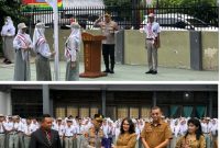 PIMPIN: Kapolrestabes Medan Kombes Pol Dr. Jean Calvijn Simanjuntak, S.I.K., M.H., memimpin upacara bendera di SMK Negeri 1 Medan, Jalan Sindoro, Kecamatan Medan Kota,…