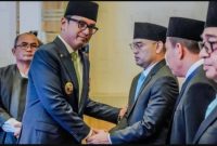 LANTIK: Wali Kota Medan Rico Tri Putra Bayu Waas saat melantik Direksi PUD Pasar, PUD Pembangunan, dan PUD Rumah Potong Hewan Kota Medan. (ist/sadamanews.com)…