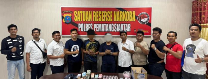 DIANGKAP: Kedua tersangka diapit petugas. SiANTAR – Satuan Reserse Narkoba Polres Pematangsiantar yang dipimpin Kepala Satuan (Kasat) Reserse Narkoba AKP Irwanta Sembiring SH. MH…