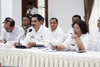 RAPAT: Gubernur Sumatera Utara (Sumut) Muhammad Bobby Afif Nasution mengikuti rapat percepatan rehabilitasi dan rekonstruksi pascabencana alam wilayah Sumatera yang berlangsung di Ruang Sasana…