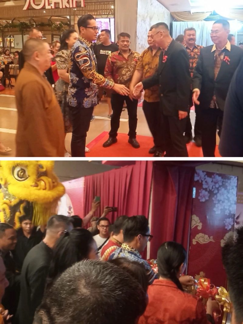 BUKA: Wali Kota Medan Rico Tri Putra Bayu Waas saat disambut panitia. Dan bawah, Wali Kota Medan saat menggunting pita tanda diresmikannya Fa Hua Exhibition Imlek Fair 2026. (Sormin/sadamanews.com)